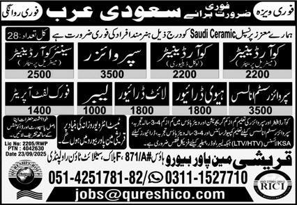 Fork Lift Operator & Heavy Driver Jobs 2025 In Saudi Arabia announce the Contract career opportunities for the post of See Below Ad in Saudi Arabia for the fresh and experienced candidates on Contract basis who have Check Advertisement degree. Posted date of this post is 25/09/2025 and the last date is 02/10/2025. if you are eligible for this job apply before due date.