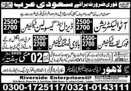 Fork Lift Technician & Body Denting Technician Jobs 2026 announce the Contract career opportunities for the post of See Below Ad in Saudi Arabia for the fresh and experienced candidates on Contract basis who have Check Advertisement degree. Posted date of this post is 22/04/2026 and the last date is 02/05/2026. if you are eligible for this job apply before due date.