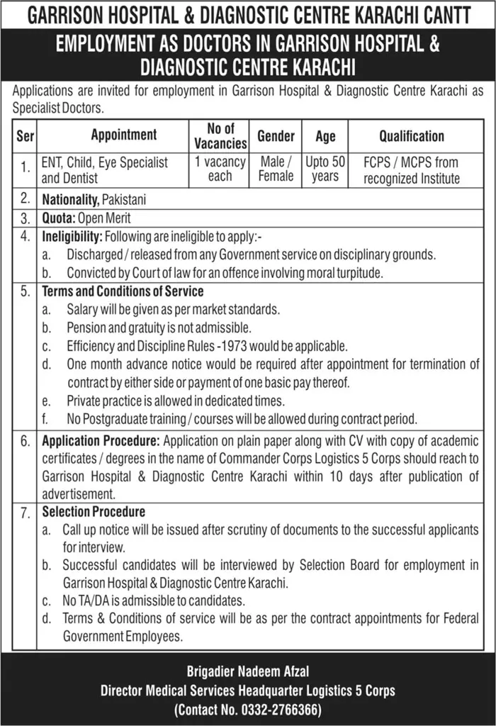 - Garrison Hospital & Diagnostic Centre invites applications for job positions advertised in daily Roznama 92 News dated 13 December 2022 for following vacancies in Karachi, karachi Sindh Pakistan. dentist eye specialist and ent specialist