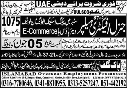 General & Factory Helper Jobs 2023 In UAE announce the Contract career opportunities for the post of See Below Ad in United Arab Emirates for the fresh and experienced candidates on Contract basis who have Check Advertisement degree. Posted date of this post is 01/06/2023 and the last date is 05/06/2023. if you are eligible for this job apply before due date.