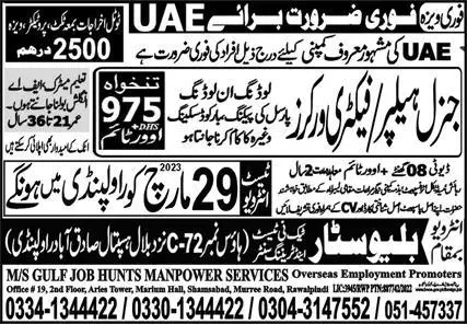 General Helper and Factory Jobs 2023 in UAE announce the Contract career opportunities for the post of See Below Ad in United Arab Emirates for the fresh and experienced candidates on Contract basis who have Check Advertisement degree. Posted date of this post is 26/03/2023 and the last date is 29/03/2023. if you are eligible for this job apply before due date.
