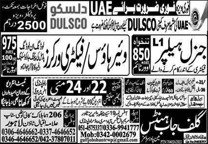 General Helper and Factory Jobs 2023 in UAE announce the Contract career opportunities for the post of See Below Ad in United Arab Emirates for the fresh and experienced candidates on Contract basis who have Check Advertisement degree. Posted date of this post is 22/05/2023 and the last date is 24/05/2023. if you are eligible for this job apply before due date.