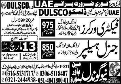 General Helper & Factory Worker Jobs 2023 in UAE announce the Contract career opportunities for the post of See Below Ad in Abu Dhabi for the fresh and experienced candidates on Contract basis who have Check Advertisement degree. Posted date of this post is 11/03/2023 and the last date is 13/03/2023. if you are eligible for this job apply before due date.