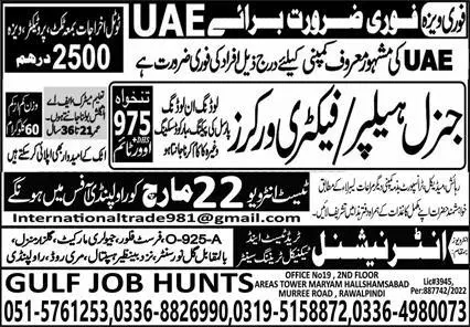 General Helper & Factory Worker Jobs 2023 in UAE 2023 announce the Contract career opportunities for the post of See Below Ad in Abu Dhabi for the fresh and experienced candidates on Contract basis who have Check Advertisement degree. Posted date of this post is 17/03/2023 and the last date is 22/03/2023. if you are eligible for this job apply before due date.