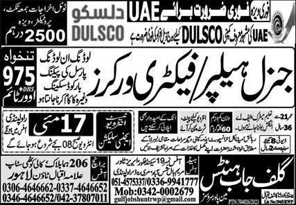 General Helper & Factory Worker Jobs In UAE 2023 announce the Contract career opportunities for the post of See Below Ad in United Arab Emirates for the fresh and experienced candidates on Contract basis who have Check Advertisement degree. Posted date of this post is 15/05/2023 and the last date is 17/05/2023. if you are eligible for this job apply before due date.