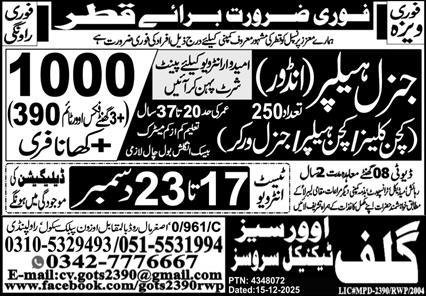 General Helper Jobs in Qatar 2025 announce the Contract career opportunities for the post of See Below Ad in Qatar for the fresh and experienced candidates on Contract basis who have Check Advertisement degree. Posted date of this post is 17/12/2025 and the last date is 23/12/2025. if you are eligible for this job apply before due date.