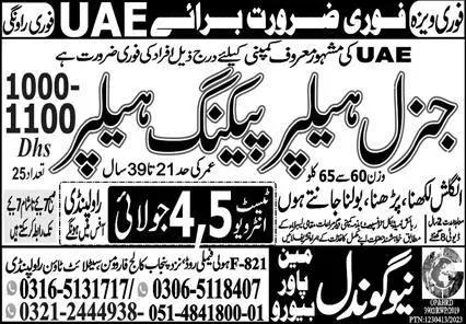 General Helper & Packing Helper Jobs 2023 In UAE announce the Contract career opportunities for the post of See Below Ad in United Arab Emirates for the fresh and experienced candidates on Contract basis who have Check Advertisement degree. Posted date of this post is 29/06/2023 and the last date is 05/07/2023. if you are eligible for this job apply before due date.