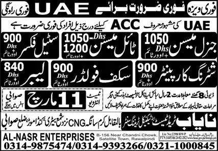 General Mason Tile Mason & Steel Fixer Jobs in UAE 2023 announce the Contract career opportunities for the post of See Below Ad in United Arab Emirates for the fresh and experienced candidates on Contract basis who have Check Advertisement degree. Posted date of this post is 09/03/2023 and the last date is 11/03/2023. if you are eligible for this job apply before due date.