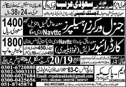 General Worker And Helper Jobs in Saudia Arabia 2025 announce the Contract career opportunities for the post of See Below Ad in Saudi Arabia for the fresh and experienced candidates on Contract basis who have Check Advertisement degree. Posted date of this post is 18/08/2025 and the last date is 20/08/2025. if you are eligible for this job apply before due date.