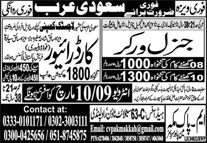 General Worker & Car Driver Jobs 2026 In Saudi Arabia announce the Contract career opportunities for the post of See Below Ad in Saudi Arabia for the fresh and experienced candidates on Contract basis who have Check Advertisement degree. Posted date of this post is 06/03/2026 and the last date is 10/03/2026. if you are eligible for this job apply before due date.
