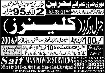 General Worker & Cleaner Jobs 2026 In Bahrain announce the Contract career opportunities for the post of See Below Ad in Bahrain for the fresh and experienced candidates on Contract basis who have Check Advertisement degree. Posted date of this post is 07/02/2026 and the last date is 10/02/2026. if you are eligible for this job apply before due date.