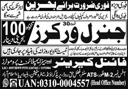 General Worker Jobs in Bahrain 2023 announce the Contract career opportunities for the post of See Below Ad in Bahrain for the fresh and experienced candidates on Contract basis who have Check Advertisement degree. Posted date of this post is 11/04/2023 and the last date is 26/04/2023. if you are eligible for this job apply before due date.
