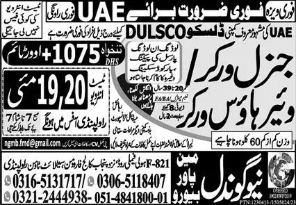 General Worker & Warehouse Worker Jobs 2023 In UAE announce the Contract career opportunities for the post of See Below Ad in United Arab Emirates for the fresh and experienced candidates on Contract basis who have Check Advertisement degree. Posted date of this post is 18/05/2023 and the last date is 20/05/2023. if you are eligible for this job apply before due date.
