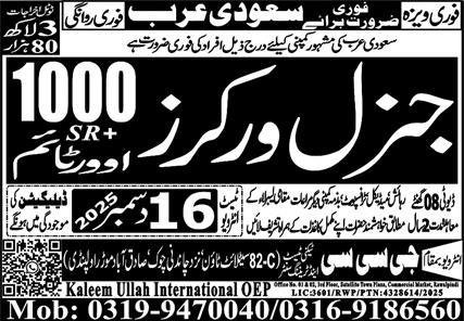 General Workers Jobs in Saudia Arabia 2025 announce the Contract career opportunities for the post of See Below Ad in Saudi Arabia for the fresh and experienced candidates on Contract basis who have Check Advertisement degree. Posted date of this post is 13/12/2025 and the last date is 16/12/2025. if you are eligible for this job apply before due date.
