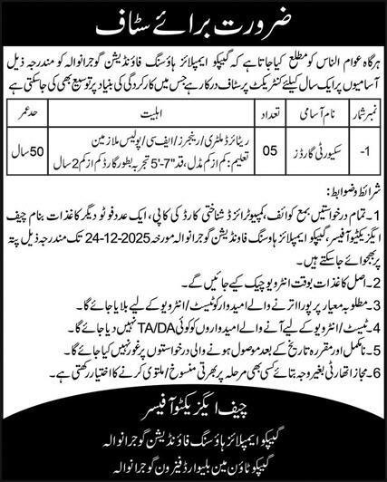 GEPCO Employees Housing Foundation GEHF Jobs 2025 announce the Contract career opportunities for the post of See Below Ad in Punjab, Gujranwala for the fresh and experienced candidates on Contract basis who have Check Advertisement degree. Posted date of this post is 10/12/2025 and the last date is 24/12/2025. if you are eligible for this job apply before due date.