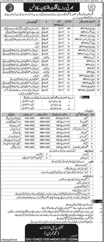 Gilgit Baltistan Scouts Jobs 2021 announce the Permanent career opportunities for the post of See Below Ad in Gilgit Baltistan for the fresh and experienced candidates on Permanent basis who have Check Advertisement degree. Posted date of this post is 16/02/2021 and the last date is 15/03/2021. if you are eligible for this job apply before due date.