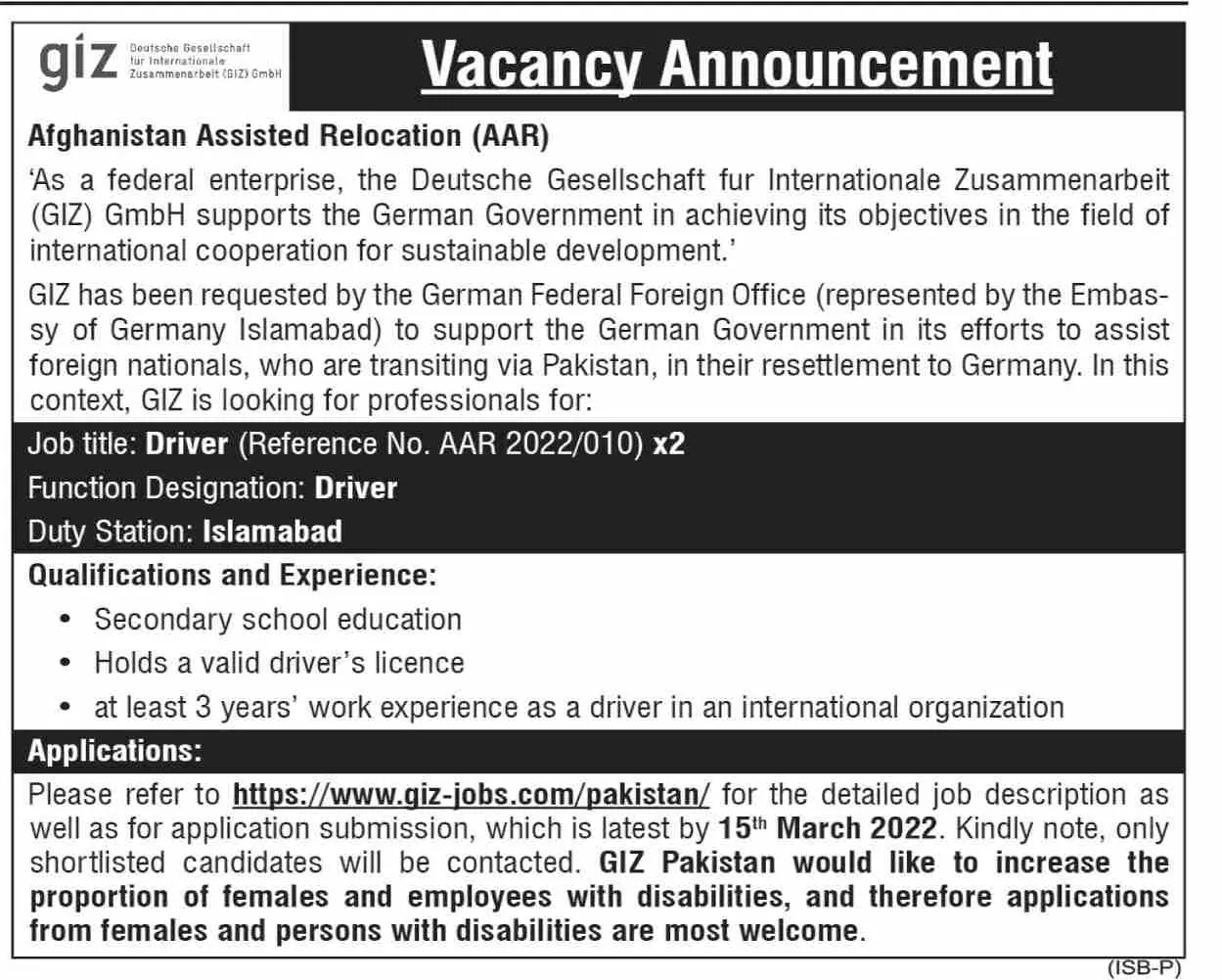 GIZ NGO Jobs announce the Contract career opportunities for the post of See Below Ad in Pakistan for the fresh and experienced candidates on Contract basis who have Check Advertisement degree. Posted date of this post is 02/03/2022 and the last date is 15/03/2022. if you are eligible for this job apply before due date.