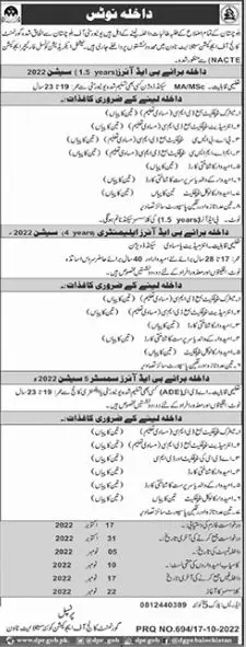 Government College of Education Quetta Admission 2022 announce the Contract career opportunities for the post of See Below Ad in Balochistan, Quetta for the fresh and experienced candidates on Contract basis who have Check Advertisement degree. Posted date of this post is 18/10/2022 and the last date is 31/10/2022. if you are eligible for this job apply before due date.