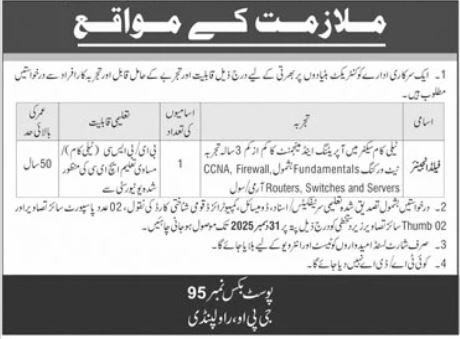 Government Organization Rawalpindi Job 2026 announce the Contract career opportunities for the post of See Below Ad in Punjab, Rawalpindi for the fresh and experienced candidates on Contract basis who have Check Advertisement degree. Posted date of this post is 19/12/2025 and the last date is 31/12/2025. if you are eligible for this job apply before due date.