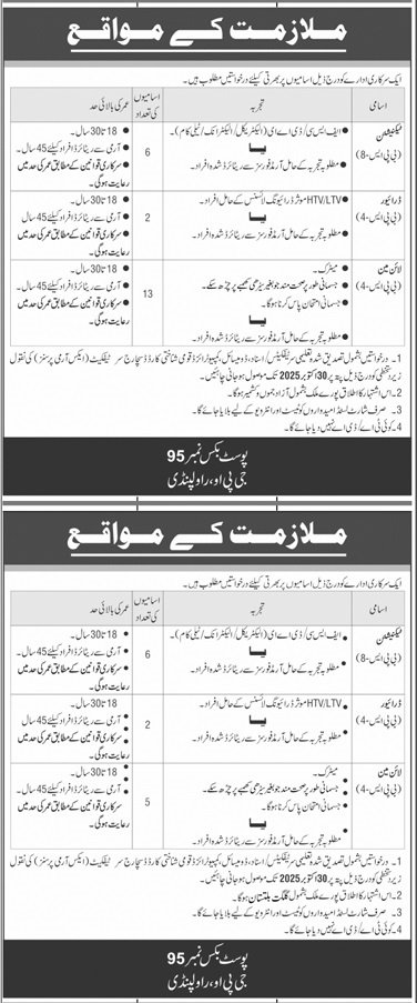 Government Organization Rawalpindi Jobs 2025 announce the Contract career opportunities for the post of See Below Ad in Punjab, Rawalpindi for the fresh and experienced candidates on Contract basis who have Check Advertisement degree. Posted date of this post is 21/10/2025 and the last date is 30/10/2025. if you are eligible for this job apply before due date.