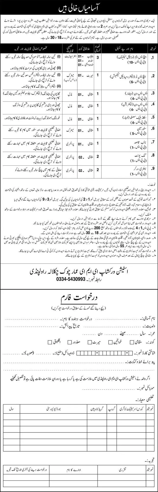Government Sector Organization Station Workshop EmE Jobs announce the Permanent career opportunities for the post of See Below Ad in Rawalpindi for the fresh and experienced candidates on Permanent basis who have Check Advertisement degree. Posted date of this post is 12/12/2021 and the last date is 27/12/2021. if you are eligible for this job apply before due date.