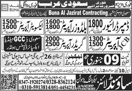 Grader Operator & JCB Operator Jobs 2026 In Saudi Arabia announce the Contract career opportunities for the post of See Below Ad in Saudi Arabia for the fresh and experienced candidates on Contract basis who have Check Advertisement degree. Posted date of this post is 08/01/2026 and the last date is 09/01/2026. if you are eligible for this job apply before due date.