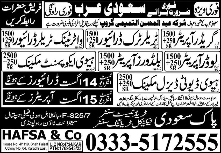 Grader Operator & Truck Tralla Driver Jobs In Saudi Arabia announce the Contract career opportunities for the post of See Below Ad in Saudi Arabia for the fresh and experienced candidates on Contract basis who have Check Advertisement degree. Posted date of this post is 13/08/2023 and the last date is 15/08/2023. if you are eligible for this job apply before due date.