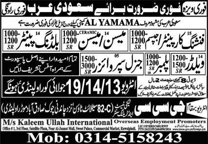 Gypsum Carpenter & General Supervisor Jobs 2024 announce the Contract career opportunities for the post of See Below Ad in Saudi Arabia for the fresh and experienced candidates on Contract basis who have Check Advertisement degree. Posted date of this post is 12/07/2024 and the last date is 19/07/2024. if you are eligible for this job apply before due date.