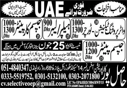 Gypsum Carpenter & Helper Jobs 2023 In UAE announce the Contract career opportunities for the post of See Below Ad in United Arab Emirates for the fresh and experienced candidates on Contract basis who have Check Advertisement degree. Posted date of this post is 23/06/2023 and the last date is 25/06/2023. if you are eligible for this job apply before due date.