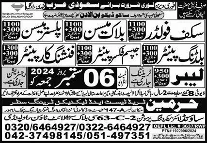 Gypsum Fixer Painter & Finishing Carpenter Jobs 2024 announce the Contract career opportunities for the post of See Below Ad in Saudi Arabia for the fresh and experienced candidates on Contract basis who have Check Advertisement degree. Posted date of this post is 03/09/2024 and the last date is 06/09/2024. if you are eligible for this job apply before due date.