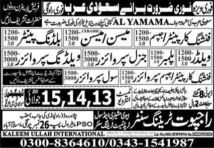Gypsum Supervisor & Welding Supervisor Jobs 2024 announce the Contract career opportunities for the post of See Below Ad in Saudi Arabia for the fresh and experienced candidates on Contract basis who have Check Advertisement degree. Posted date of this post is 11/07/2024 and the last date is 15/07/2024. if you are eligible for this job apply before due date.