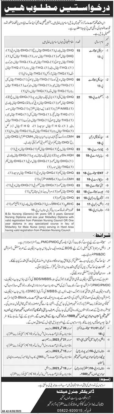 Health Department Azad Jammu Kashmir Jobs 2023 announce the Contract career opportunities for the post of See Below Ad in Azad Jammu Kashmir, Muzaffarabad for the fresh and experienced candidates on Contract basis who have Check Advertisement degree. Posted date of this post is 01/09/2023 and the last date is 16/09/2023. if you are eligible for this job apply before due date.