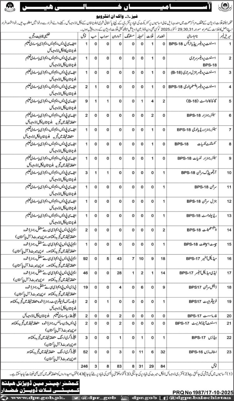FCPS, MS, MD, or equivalent qualification, related field experience, Balochistan local domicile |