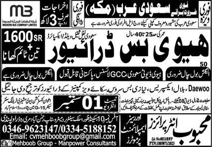 Heavy Bus Driver Jobs In Makkah 2023 announce the Contract career opportunities for the post of See Below Ad in Saudi Arabia for the fresh and experienced candidates on Contract basis who have Check Advertisement degree. Posted date of this post is 29/08/2023 and the last date is 01/09/2023. if you are eligible for this job apply before due date.