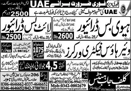 Heavy Bus Driver & Lite Bus driver Jobs in UAE 2023 announce the Contract career opportunities for the post of See Below Ad in United Arab Emirates for the fresh and experienced candidates on Contract basis who have Check Advertisement degree. Posted date of this post is 03/07/2023 and the last date is 05/07/2023. if you are eligible for this job apply before due date.
