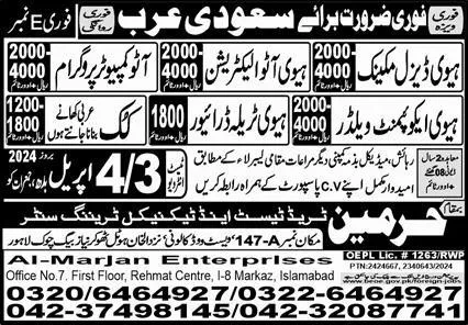 Heavy Diesel Mechanic & Heavy Auto Electrician Jobs 2024 announce the Contract career opportunities for the post of See Below Ad in Saudi Arabia for the fresh and experienced candidates on Contract basis who have Check Advertisement degree. Posted date of this post is 03/04/2024 and the last date is 04/04/2024. if you are eligible for this job apply before due date.