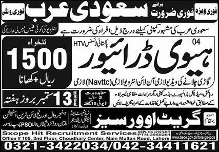 Heavy Driver & HTV Driver Jobs 2025 In Saudi Arabia announce the Contract career opportunities for the post of See Below Ad in Saudi Arabia for the fresh and experienced candidates on Contract basis who have Check Advertisement degree. Posted date of this post is 12/09/2025 and the last date is 13/09/2025. if you are eligible for this job apply before due date.