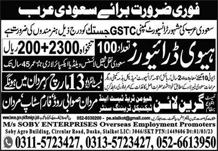 Heavy Driver jobs in Saudi Arabia 2023 announce the Contract career opportunities for the post of See Below Ad in Saudi Arabia for the fresh and experienced candidates on Contract basis who have Check Advertisement degree. Posted date of this post is 10/03/2023 and the last date is 13/03/2023. if you are eligible for this job apply before due date.