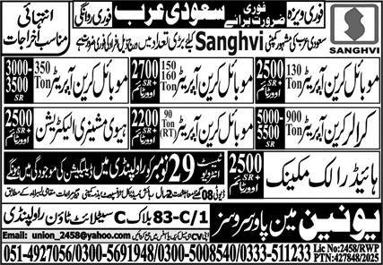 Heavy Machinery Electrician & Hydraulic Mechanic Jobs 2025 announce the Contract career opportunities for the post of See Below Ad in Saudi Arabia for the fresh and experienced candidates on Contract basis who have Check Advertisement degree. Posted date of this post is 26/11/2025 and the last date is 29/11/2025. if you are eligible for this job apply before due date.