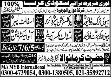Heavy Truck Driver & Asphalt Labor Jobs In Saudi Arabia 2023 announce the Contract career opportunities for the post of See Below Ad in Saudi Arabia for the fresh and experienced candidates on Contract basis who have Check Advertisement degree. Posted date of this post is 30/05/2023 and the last date is 07/06/2023. if you are eligible for this job apply before due date.
