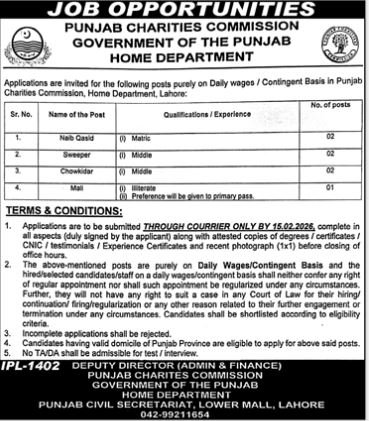 Home Department Punjab Jobs 2026 announce the Contract career opportunities for the post of See Below Ad in Punjab, Lahore for the fresh and experienced candidates on Contract basis who have Check Advertisement degree. Posted date of this post is 08/02/2026 and the last date is 15/02/2026. if you are eligible for this job apply before due date.