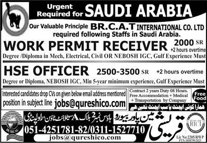 HSE Officer & Work Permit Receiver Jobs 2023 announce the Contract career opportunities for the post of See Below Ad in Saudi Arabia for the fresh and experienced candidates on Contract basis who have Check Advertisement degree. Posted date of this post is 14/04/2023 and the last date is 21/04/2023. if you are eligible for this job apply before due date.