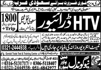 HTV Driver & Driver Jobs 2023 in Saudi Arabia announce the Contract career opportunities for the post of See Below Ad in Saudi Arabia for the fresh and experienced candidates on Contract basis who have Check Advertisement degree. Posted date of this post is 28/02/2023 and the last date is 07/03/2023. if you are eligible for this job apply before due date.