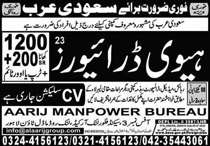 HTV Driver & Heavy Driver Jobs 2024 In Saudi Arabia announce the Contract career opportunities for the post of See Below Ad in Saudi Arabia for the fresh and experienced candidates on Contract basis who have Check Advertisement degree. Posted date of this post is 10/07/2024 and the last date is 17/07/2024. if you are eligible for this job apply before due date.