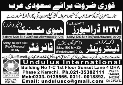 HTV Driver & Heavy Mechanic Jobs in Saudi Arabia 2023 announce the Contract career opportunities for the post of See Below Ad in Saudi Arabia for the fresh and experienced candidates on Contract basis who have Check Advertisement degree. Posted date of this post is 02/04/2023 and the last date is 17/04/2023. if you are eligible for this job apply before due date.