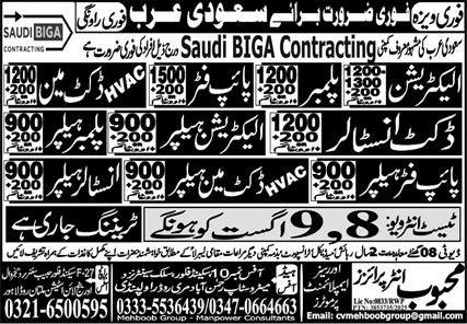 HVAC Duct Man & Duct Installer Jobs 2025 In Saudi Arabia announce the Contract career opportunities for the post of See Below Ad in Saudi Arabia for the fresh and experienced candidates on Contract basis who have Check Advertisement degree. Posted date of this post is 02/08/2025 and the last date is 09/08/2025. if you are eligible for this job apply before due date.