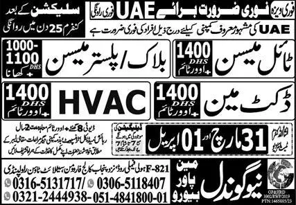 HVAC Technician & Plaster Mason Jobs 2023 in UAE announce the Contract career opportunities for the post of See Below Ad in United Arab Emirates for the fresh and experienced candidates on Contract basis who have Check Advertisement degree. Posted date of this post is 30/03/2023 and the last date is 01/04/2023. if you are eligible for this job apply before due date.
