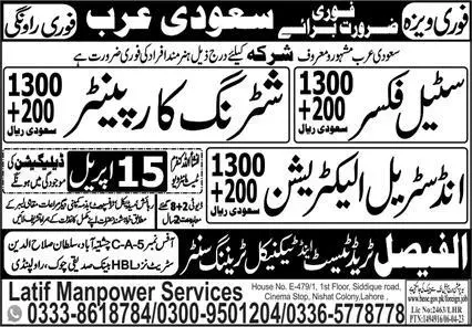 Industrial Electrician & Steel Fixer Jobs 2023 Saudi Arabia announce the Contract career opportunities for the post of See Below Ad in Saudi Arabia for the fresh and experienced candidates on Contract basis who have Check Advertisement degree. Posted date of this post is 14/04/2023 and the last date is 15/04/2023. if you are eligible for this job apply before due date.