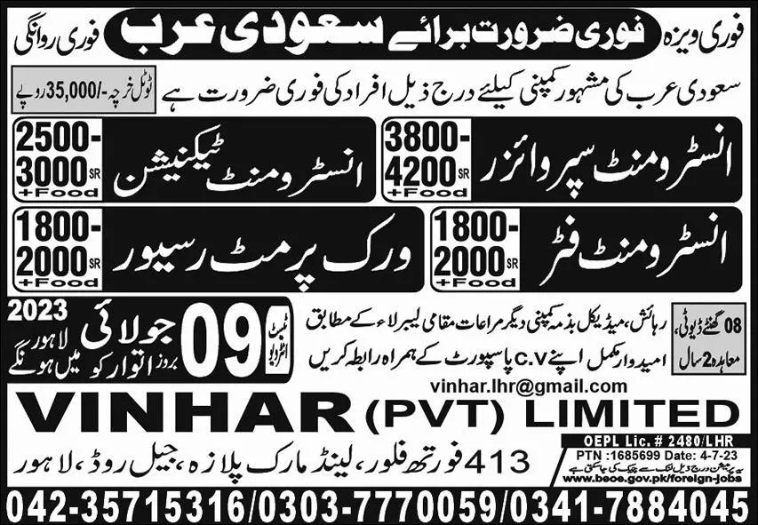 Instrument Supervisor & Instrument Technician Jobs 2023 announce the Contract career opportunities for the post of See Below Ad in Saudi Arabia for the fresh and experienced candidates on Contract basis who have Check Advertisement degree. Posted date of this post is 07/07/2023 and the last date is 09/07/2023. if you are eligible for this job apply before due date.