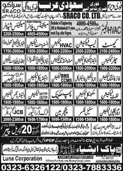 Instrument Technician & Maintenance Planner Jobs 2026 announce the Contract career opportunities for the post of See Below Ad in Saudi Arabia for the fresh and experienced candidates on Contract basis who have Check Advertisement degree. Posted date of this post is 16/04/2026 and the last date is 20/04/2026. if you are eligible for this job apply before due date.